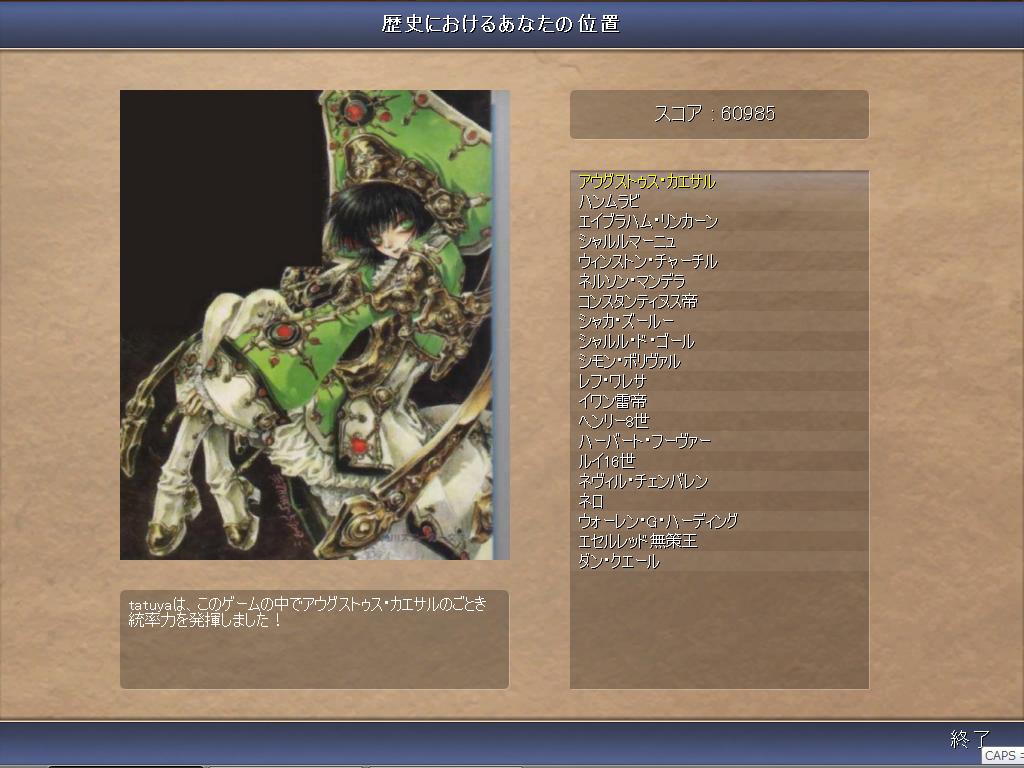 そして1850年に制覇勝利の条件を満たし、勝利。